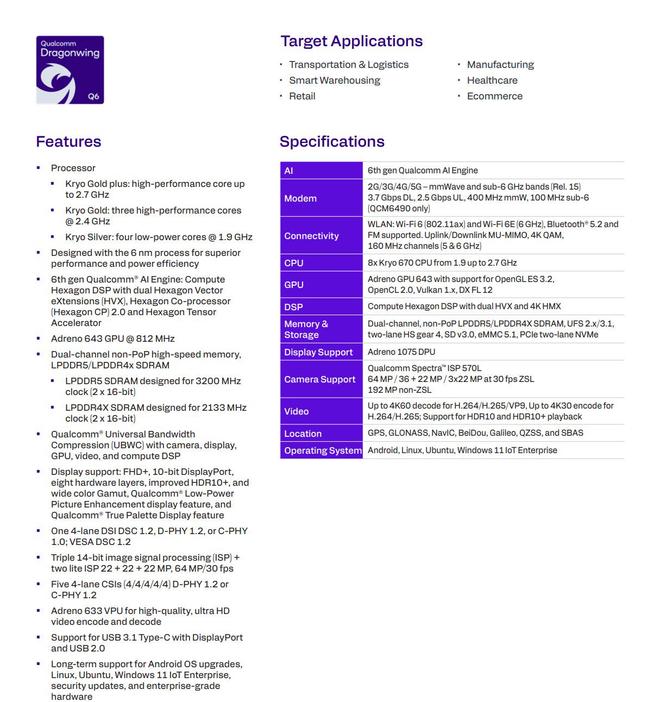 官方强调,该机搭载高通跃龙(Qualcomm Dragonwing)QCS6490 芯片,可以看作是“骁龙 782G 物联网版”QCM6490 芯片取消 5G 基带(IT之家注:CPU 为八核 Kryo 670,A55 小核 1.9GHz,A78 中核 2.4GHz,A78 大核 2.7GHz,GPU 是 Adreno 643)。同时匹配 8GB RAM 和 256GB 存储空间,号称是“强调性能的 Hi-Fi 播放器”。