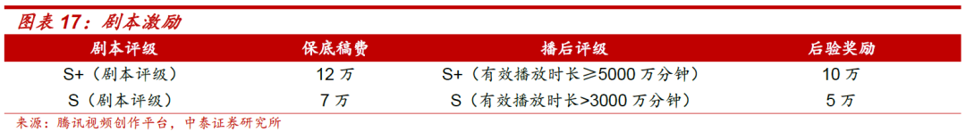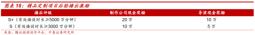 保底激励:根据剧集市场表现分级激励,一次性奖励;