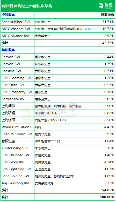 招股书显示,闪回科技在上市前的股东架构中,