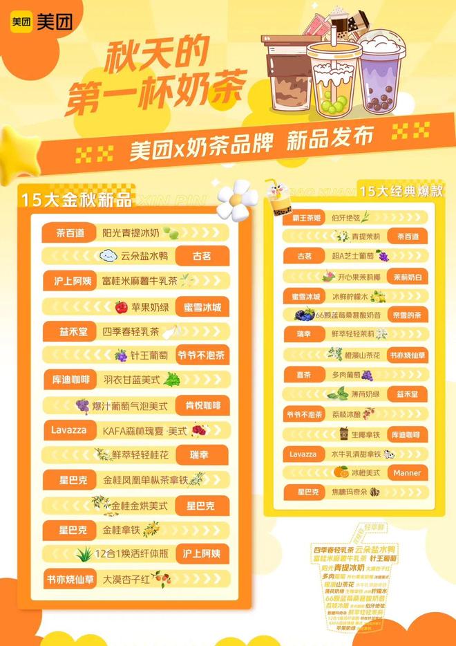 于是,今年“秋一杯”期间,美团为超百家奶茶品牌,大搞新品首发和IP联名。