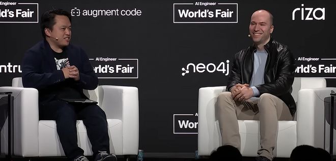▲Greg Brockman(右)与主持人(左)工程与科研,是驱动AI发展的两大引擎。工程师出身的Brockman认为,工程师的贡献与研究人员不相上下,甚至在某些方面更为重要。如果没有科研创新,就无事可做;如果没有工程能力,那些想法就无法实现。