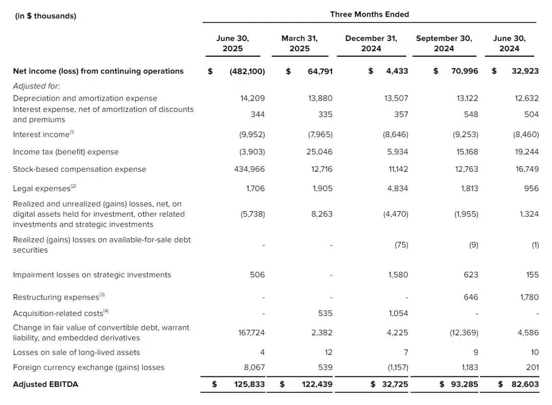 Gemini在截至2025年上半年的Adjusted EBITDA为-1.13亿美元,上年同期为3204万美元。