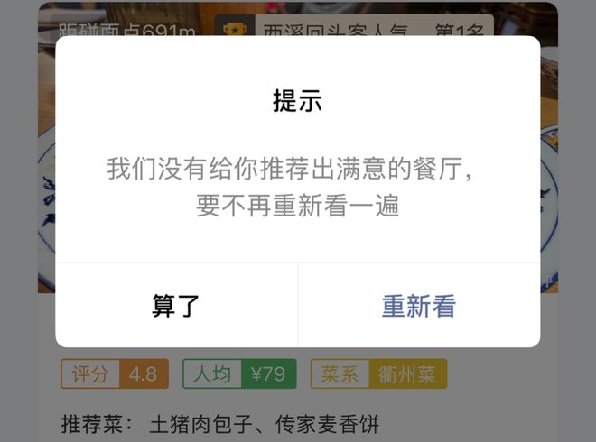 比如餐厅只翻到了 7、8 家就已经到顶了,有些店铺因为数据过少,都已经推荐到 20 公里开外了,那你还推荐干啥呢。