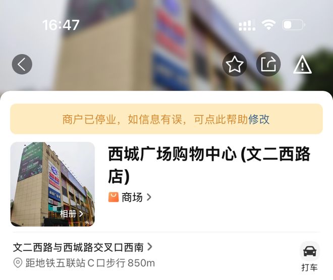 刚才推荐的西城广场,早在几年前就倒闭了。附近餐厅的那些评分数据,应该是从大众点评上获取的,但是很多店的评分都变了,它也没更新。