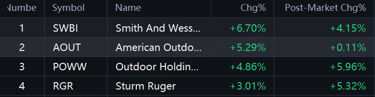 Gun stocks rise in wake of Charlie Kirk shooting; Smith & Wesson Brands up 6%; American Outdoor Brands and Outdoor Holding Company up 5%; Sturm, Ruger & Company up 3%.