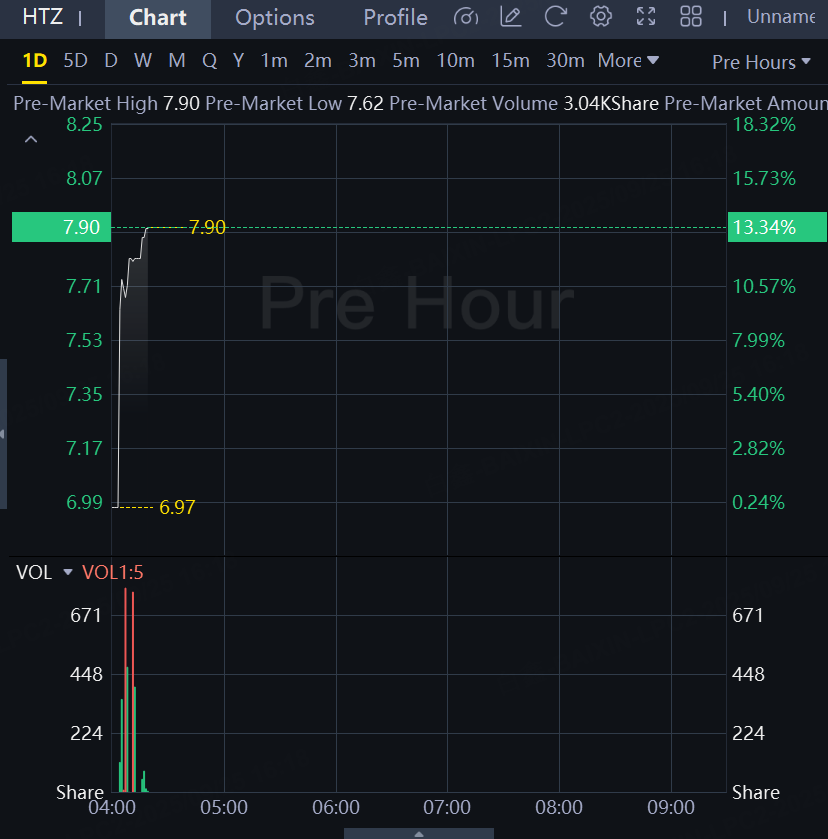 Hertz shares jump 13% premarket on the news.