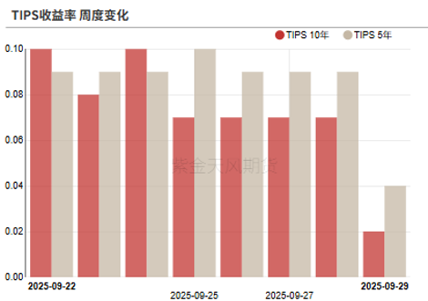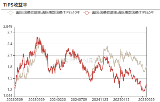 5年期和10年期TIPS收益率上行,5年期TIPS收益率收于1.33%,较前周上行4bps;10年期TIPS收益率收于1.8%,较前周上行2bps。