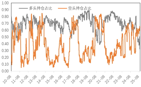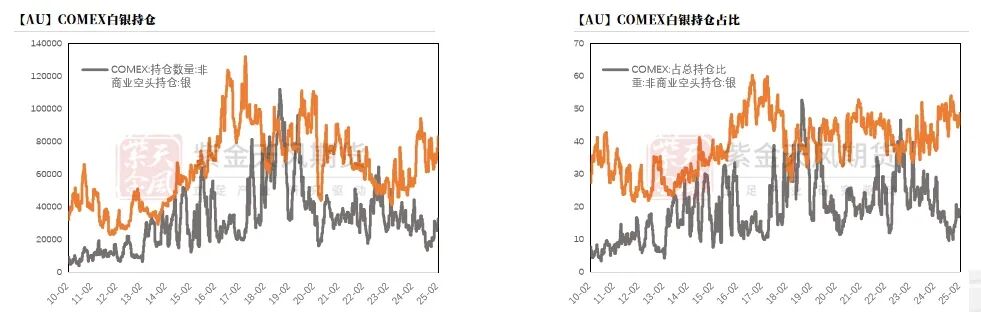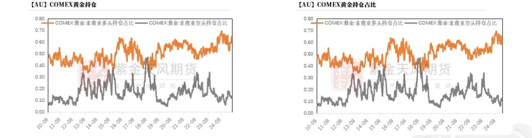 持仓占比方面,非商业多头持仓减少至63%附近,非商业空头持仓减少到12%附近。