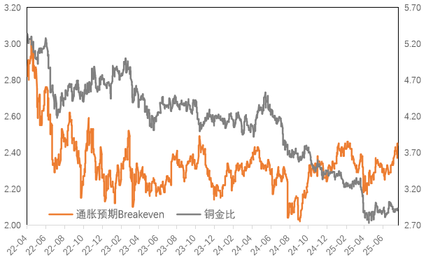 上周铜金比上升至2.75,铜价上涨幅度超过黄金,显示全球总需求动能边际回升。