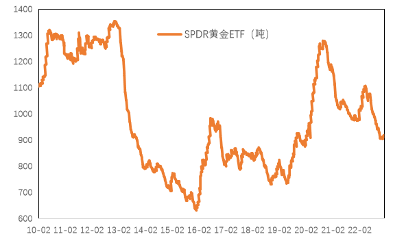 SPDR黄金ETF持仓环比增加11.16吨至1011.7吨,目前持仓规模位于10年来中位数偏低附近;