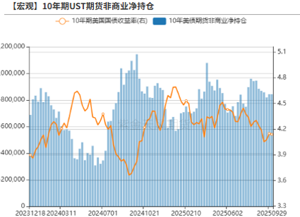 截至9.23的数据,长短端美债利率持仓分化,2年期UST期货非商业净持仓空头减少103272手至1,300,198手;10年期UST期货非商业净持仓空头增加24817手至844116手。