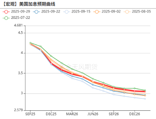降息预测幅度较前一周有所收敛,强劲的经济数据是背后的主要推手。当前,货币市场计入了到年底41.5bps的降息幅度,到明年年底103.3bps的降息空间,愈发向9月FOMC点阵图靠拢。