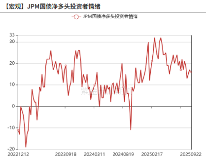 截至9.22当周,JPM国债净多头投资者情绪16,较前一周回落。