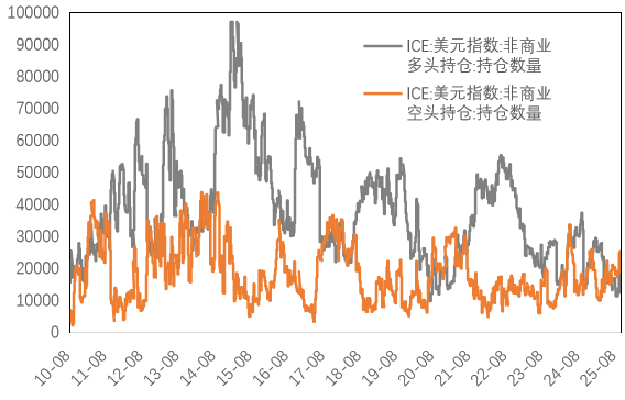 持仓占比方面,非商业多头持仓减少至43.6%附近,非商业空头持仓减少至12.1%附近。