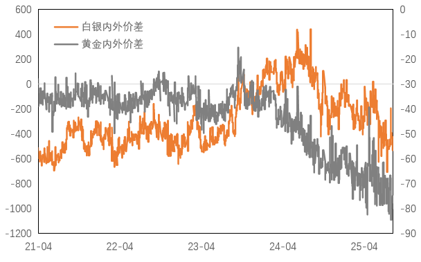 上周黄金内外价差回落,大部分时间低于零轴,内盘对黄金品种拥挤度不高。