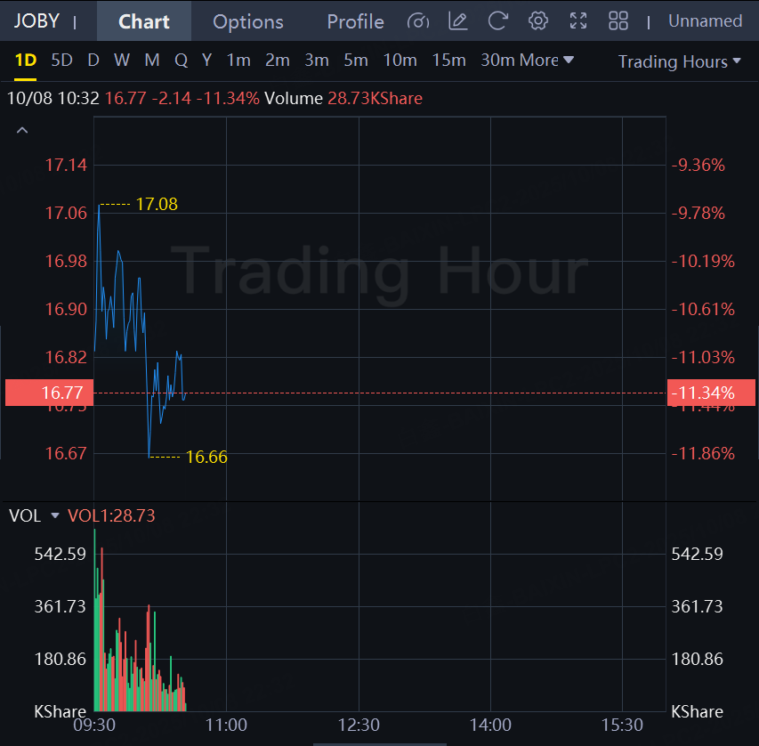 Shares of Joby Aviation fell 11% after the company said it would offer $500 million of its shares.