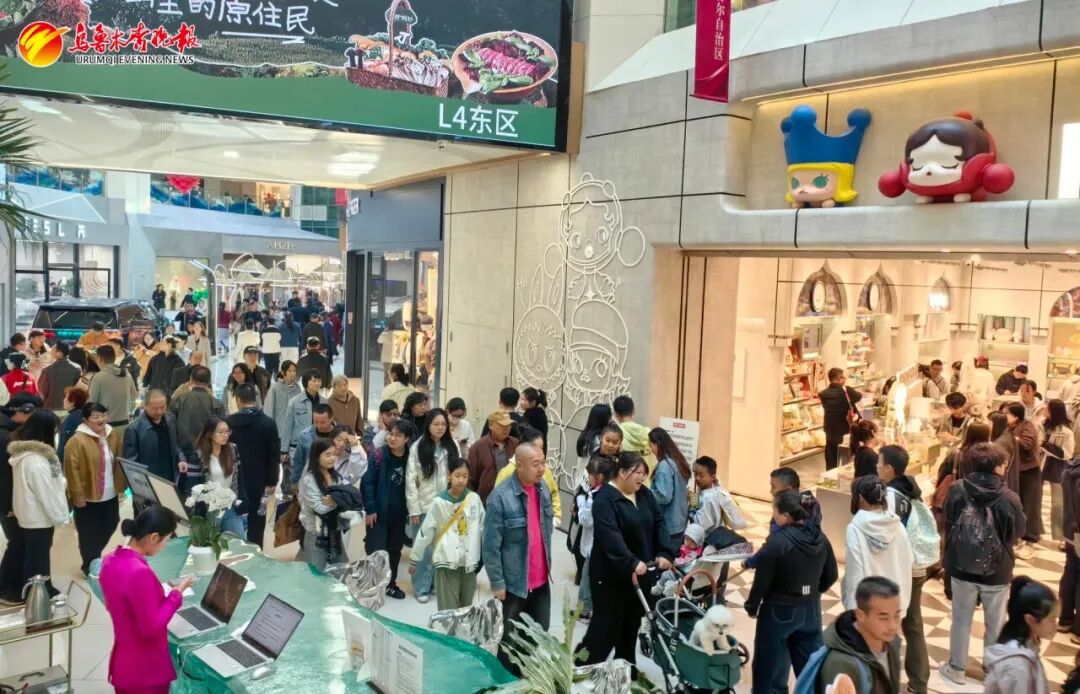 国庆中秋假期,新疆组织开展重点促消费活动62场,各地州市投入补贴资金约1.5亿元,消费市场供应充足、购销两旺。图为CCMALL时代广场迎来客流高峰。