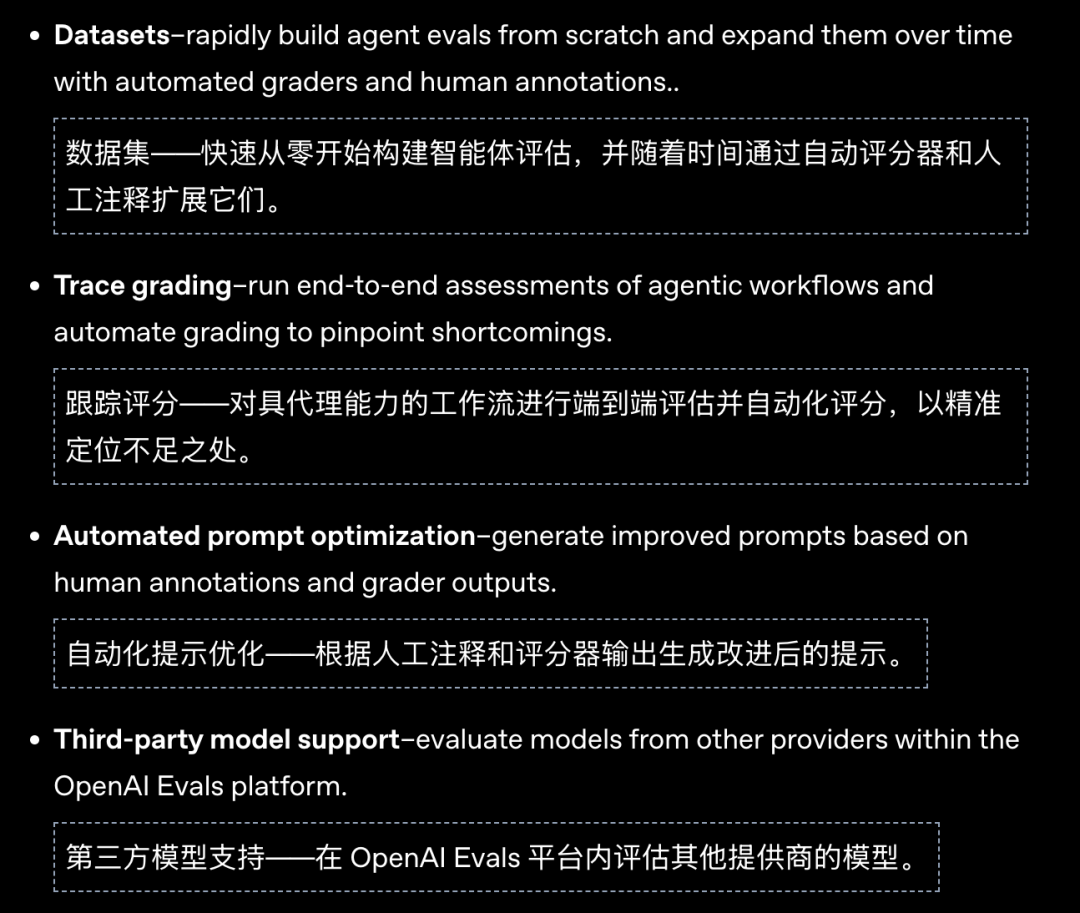 此外,OpenAI这次还提供了评估智能体能力的Eval指标。