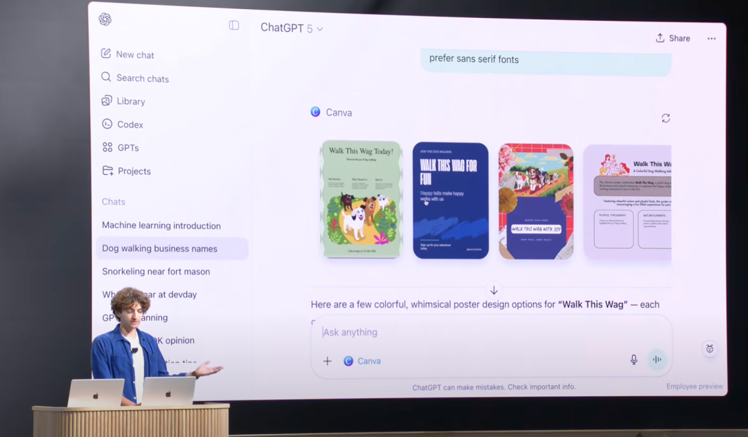 可以直接在ChatGPT中要求“Canva”制作海报,而不需要额外跳转。