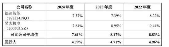 然而,由于研究起步晚、行业重视度不足等情况的存在,我国大陆地区品牌在刀库、主轴、转台等行业存在感较弱。就冈田智能而言,公司对研发投入的重视似乎也明显不够。招股书显示,2022年-2024年,冈田智能各期研发投入占营业收入的比例分别为 4.96%、4.71%、4.79%,但包括昊志机电在内的同行可比上市公司研发费用率约为8%左右。