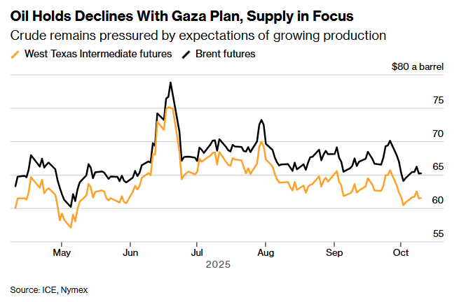 此外,对油价构成新的压力的是,以色列开始从加沙撤军,而美国启动了为期72小时的最后通牒,要求哈马斯释放所有剩余人质——这是结束这场中东地区动荡的重要一步。中东地区是全球约三分之一原油的来源,这一进展基本消除了此前因该地区冲突带来的原油风险溢价。
