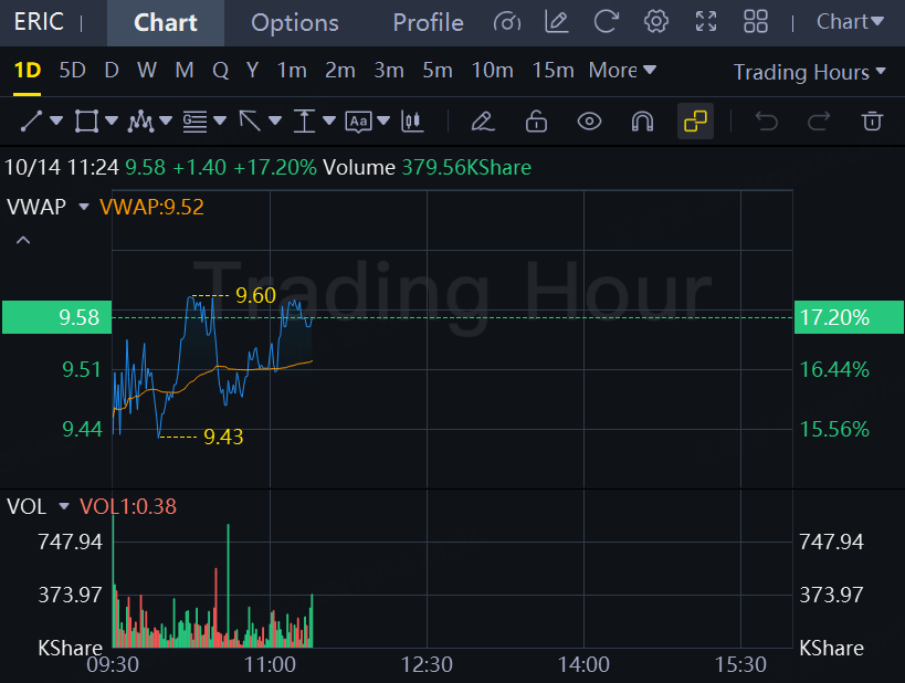 Ericsson rose 17% on Tuesday.