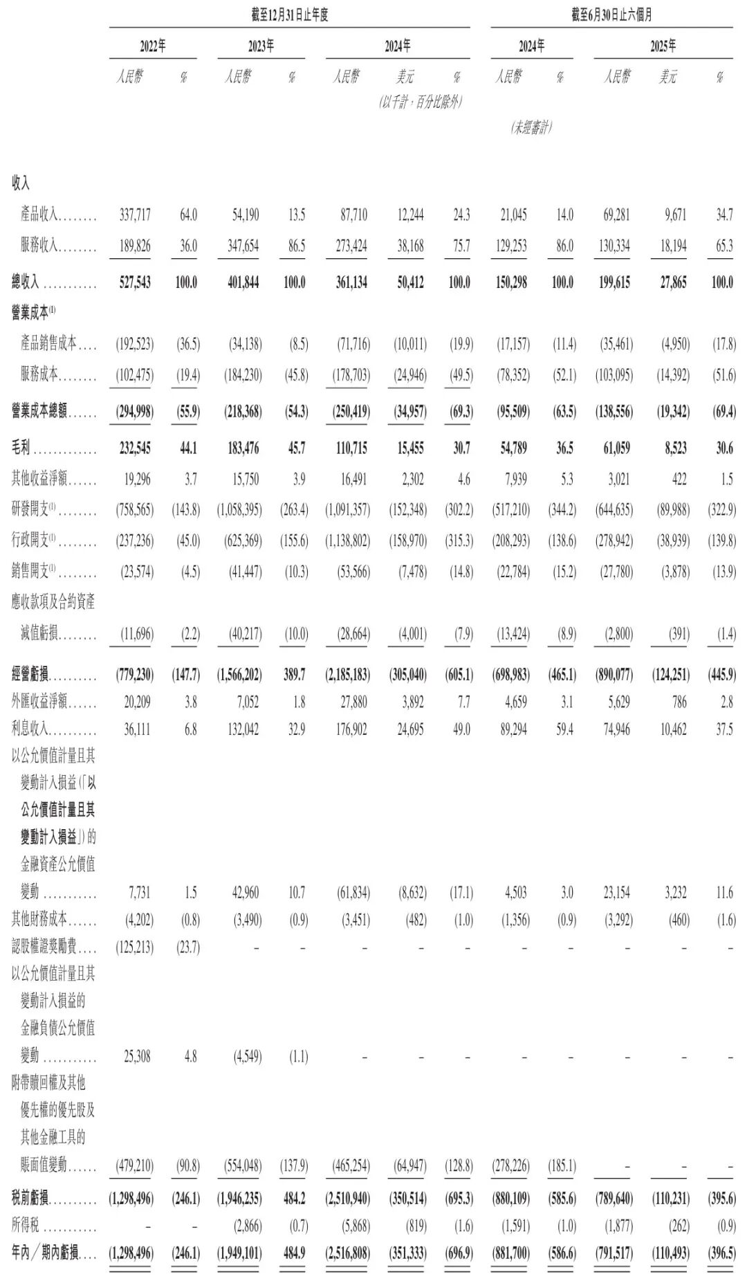 招股书显示,文远知行2022年、2023年、2024年营收分别为5.28亿元、4.02亿元、3.61亿元;2025年上半年营收2亿元,较上年同期的1.5亿元增长33.3%。