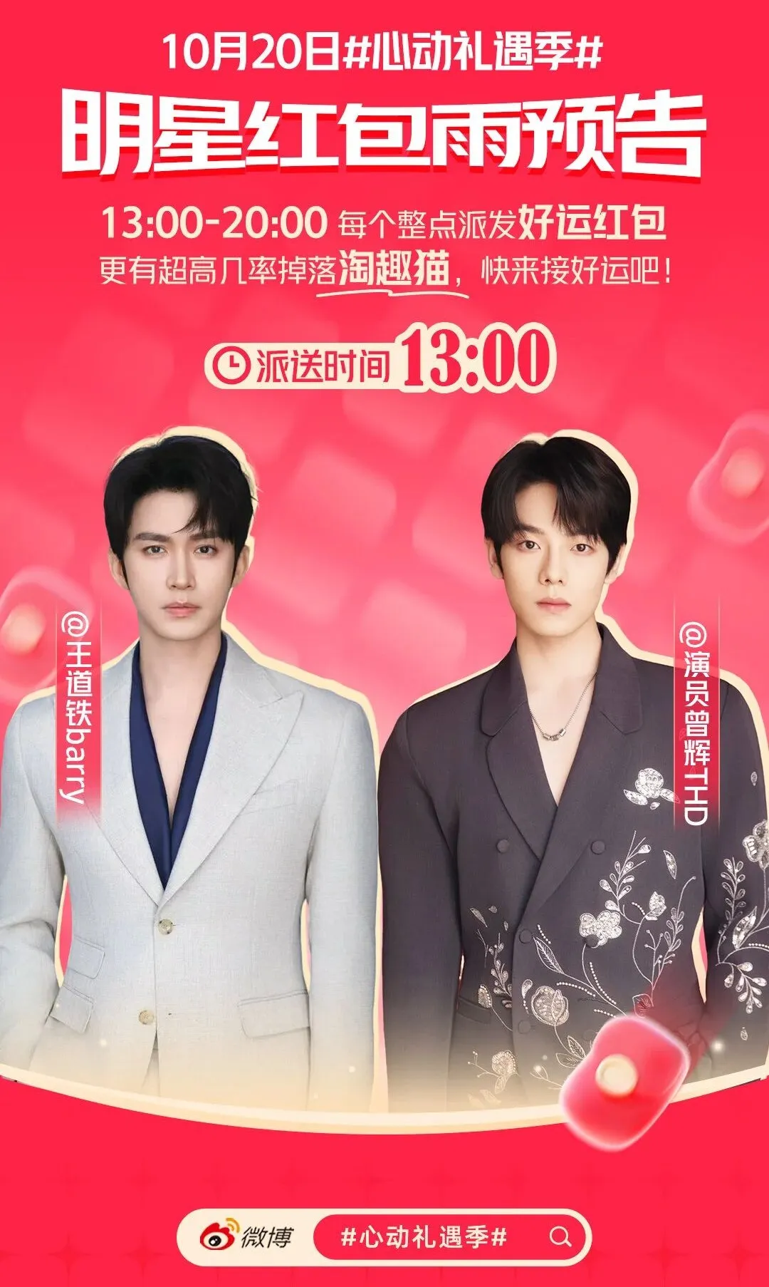 短剧演员王道铁、何健麒等就组成“霸总天团”,通过微博发红包的方式为电商引流,而红包中嵌入“淘趣猫”等电商福利。以霸总人设传递红包福利,一方面延续了短剧中的角色特征,强化用户情感联结;另一方面带动粉丝消费欲望。这种“角色沉浸式营销”正是短剧与电商结合的核心优势——将虚构剧情中的消费冲动延伸至现实购物场景。而粉丝为了领取红包,必须跳转至演员主页,过程中自然接触双11促销信息,形成“短剧IP引流到电商转化”的闭环。