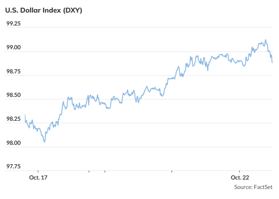 Meanwhile, the ICE U.S. Dollar Index, a measure of the greenback versus a basket of six other currencies, was holding steady at close to 99 on Wednesday, after inching higher since last Friday. The dollar is still very overvalued, and if it goes to fair value, “that’s not really a debasement,” Chandler said.