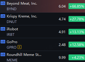 Beyond Meat soared 67%, Krispy Kreme surged 28%, iRobot and GoPro up 10% and Meme ETF up 4% in morning trading on Wednesday, fueled by a fresh wave of buying among retail traders who have sparked meme stock frenzies on Wall Street in recent years.
