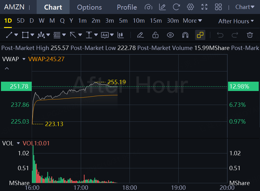 Shares of Amazon soared 13% in extended trading, lifting the company's market value by about $270 billion.