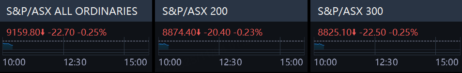 Australia's S&P/ASX 200 Index Down 0.2% at 8,874.40 Points in Early Trade