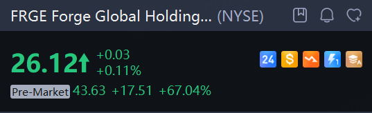 The per-share deal value of $45, represents a premium of roughly 72% over the stock's last closing price. Shares of Forge Global surged 67% in premarket trading on the news.
