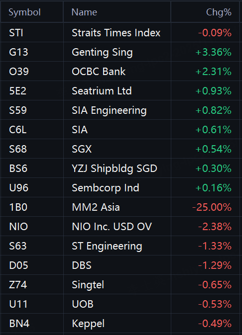 In company news, shares of Mm2 Asia (SGX:1B0) plunged over 25% at the close as its subsidiaries, mm2 Entertainment, UnUsUal Management, mm Plus and mm Connect received letters of demand from United Overseas Bank in relation to owed debts.