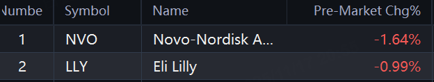 Novo Nordisk and Eli Lilly shares both dropped premarket.
