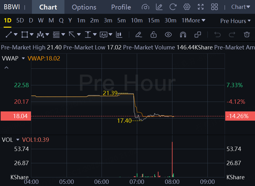 (Reuters) - Bath & Body Works trimmed its annual profit and sales forecasts on Thursday, signalling weak demand for its scented candles and fragrances among cash-strapped shoppers and mounting costs, sending its shares down 14% in premarket trading.