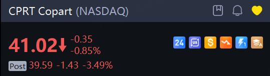 Shares of the company, which provides auction services for damaged and total-loss vehicles to used-car dealers and dismantlers, fell 3.5% in extended trading.
