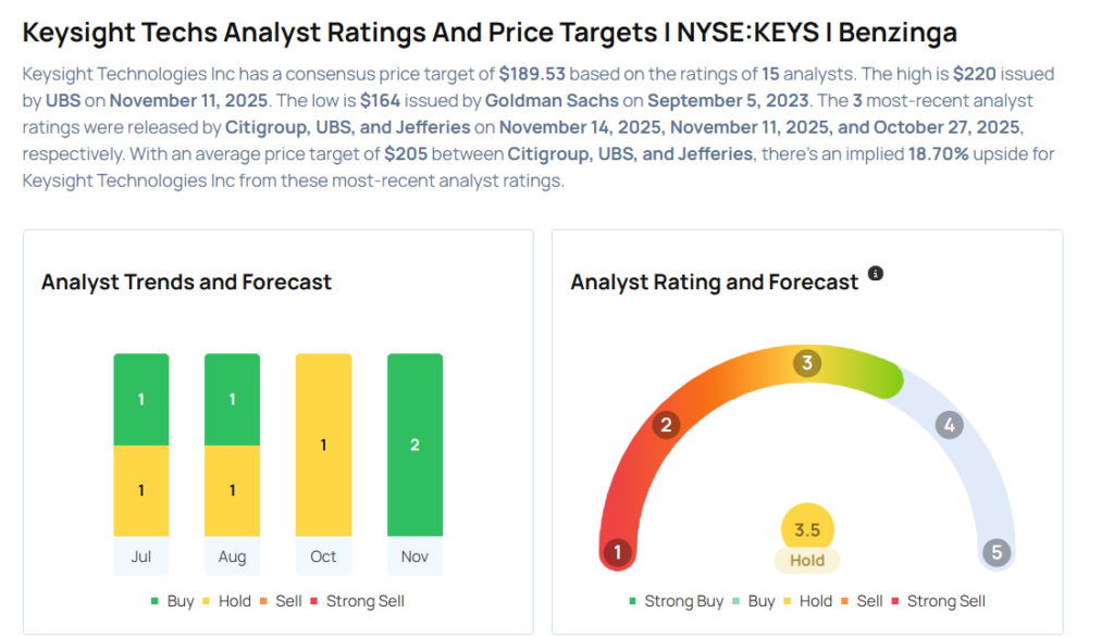 • Citigroup analyst Atif Malik reinstated Keysight with a Buy and announced a $215 price target on Nov. 14, 2025. This analyst has an accuracy rate of 83%.