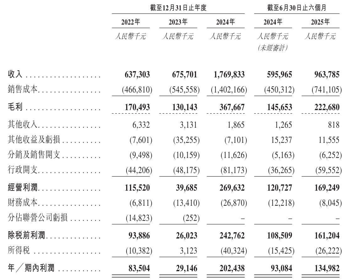 金浔资源2025年上半年营收9.64亿,较上年同期的6亿元增长60.67%;毛利2.23亿,上年同期的毛利为1.46亿;经营利润为1.69亿,上年同期的经营利润1.2亿;期内利润为1.35亿,上年同期的期内利润为9308万元。