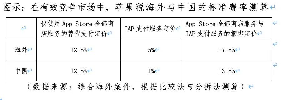 如果苹果IAP支付服务在海外的公平价格为5%,按照英国竞争上诉法庭的比较法结论,苹果仅提供应用分发等全部商店服务的海外公平价格则是17.5%-5%,即12.5%。
