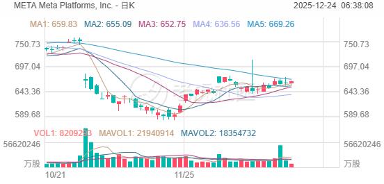 年初以来,Meta股价累计上涨约13%,略逊于标普500指数同期约17%的涨幅;不过,自8月12日创下790美元的历史收盘高位以来,股价已回落约16%。10月30日公司公布的三季度业绩喜忧参半,管理层披露利润率下滑并上调AI基础设施投入预期,导致当日股价下挫11%。