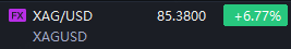 Spot silver XAG= rose 6.8%, hitting an all-time high of $85.38 per ounce.