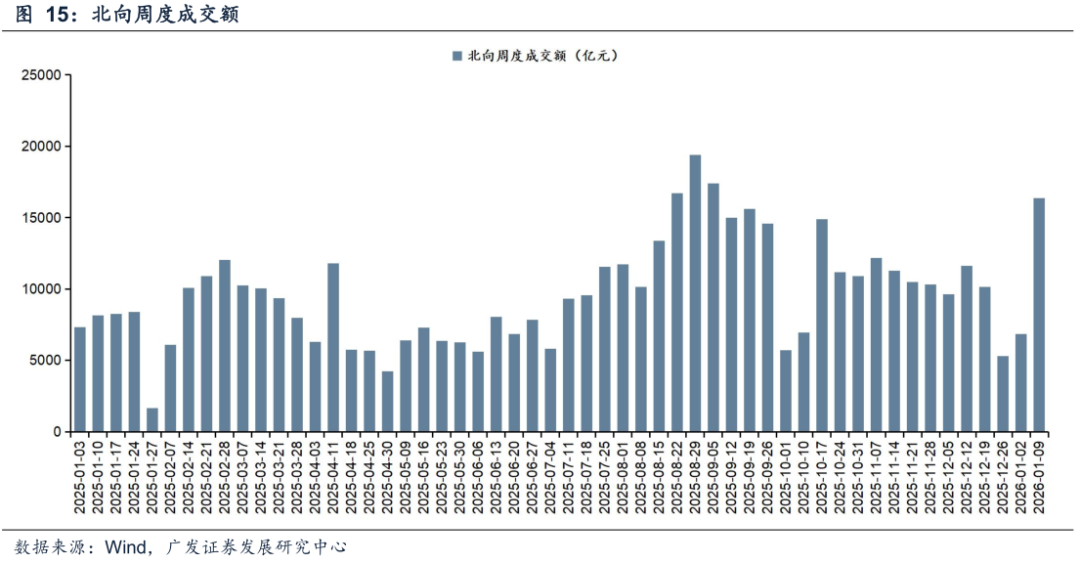 北向资金本周日均成交额减少。本周(1月5日—1月9日)北向资金总成交金额为1.64万亿元,日均成交额为4089.39亿元,较上周日均成交金额减少2375.61亿元。