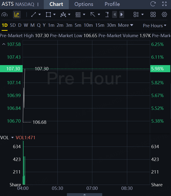 AST SpaceMobile, Inc. jumped 6% in premarket after hitting a new all-time high as investors continue to pile into space-communications names.