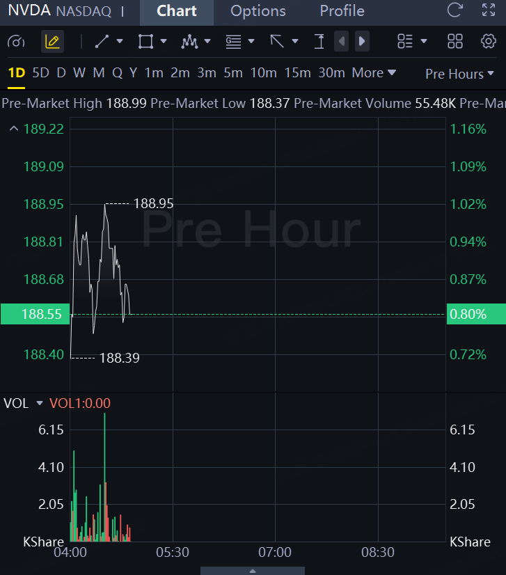 Nvidia shares were up 0.8% at $188.55 in premarket trading, after rising 2.1% during the day's trading session.