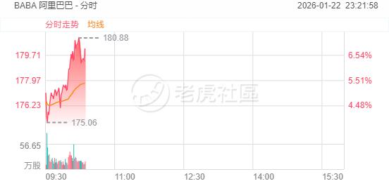 1月22日,阿里巴巴涨幅扩大至7%,股价站上180美元,创去年11月以来新高。