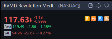 U.S.-listed shares of Revolution Medicines, Inc. fell 19% in overnight trading.