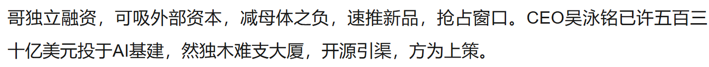 从战略维度分析,分拆符合阿里在AI时代的竞争需求。
