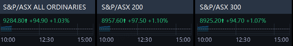Among local companies with a market cap of at least 15 billion Australian dollars ($10.37 billion), BHP Group is the biggest leader this morning, gaining 3.0%, and South32 gained 2.8%. REA Group rounds out the top three movers, as shares gained 2.6%.