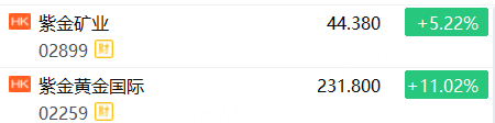 1月27日,紫金系早盘走高,截至发稿,紫金矿业涨超5%,紫金黄金国际涨超11%。
